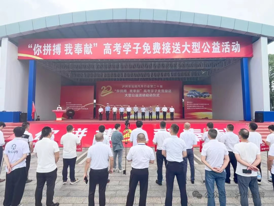 6月5日由瀘州市道路運輸協(xié)會承辦的第二十屆“你拼搏、我奉獻”高考學子免費接送公益活動在西南商貿(mào)城五區(qū)舉行啟動儀式,省交通廳、市上有關(guān)領(lǐng)導和瀘州市16家巡游出租汽車公司及網(wǎng)約車公司650輛參加此次送考活動的啟動儀式,隨著市領(lǐng)導宣布活動正式開始,參加活